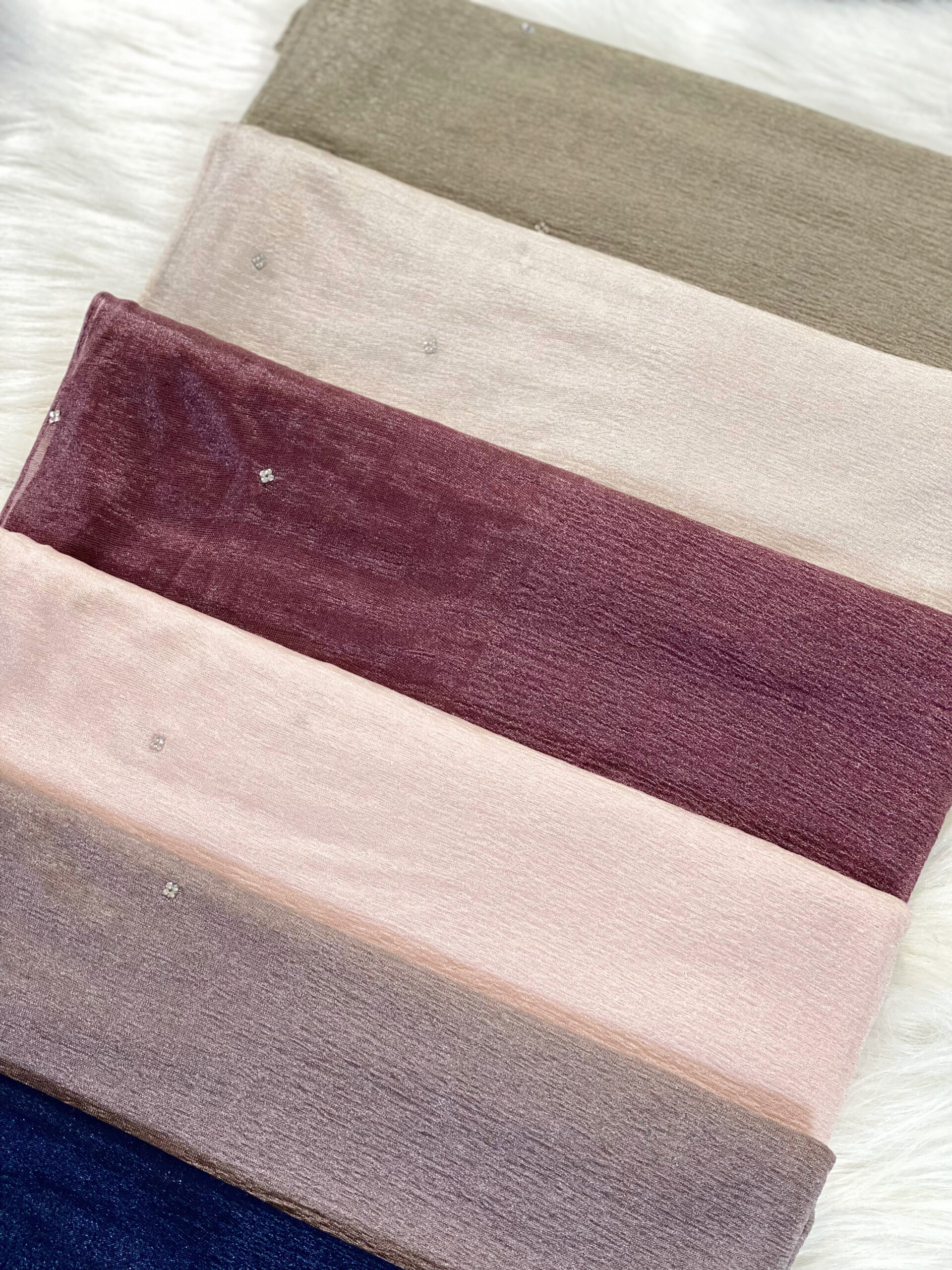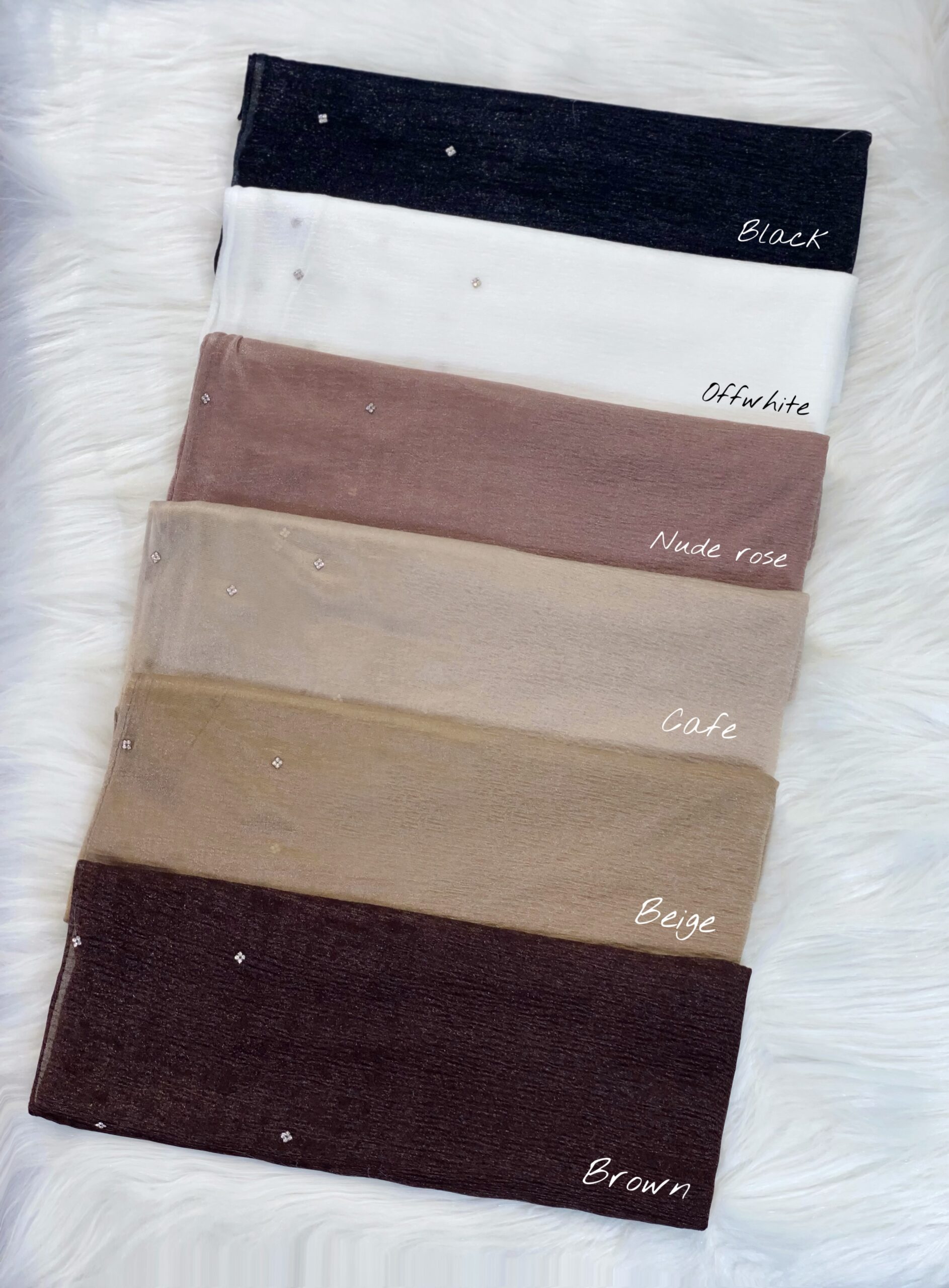 4. التخزين: احفظي الطرحة في مكان جاف وبارد، ويفضل أن تكون مفرودة أو ملفوفة برفق.