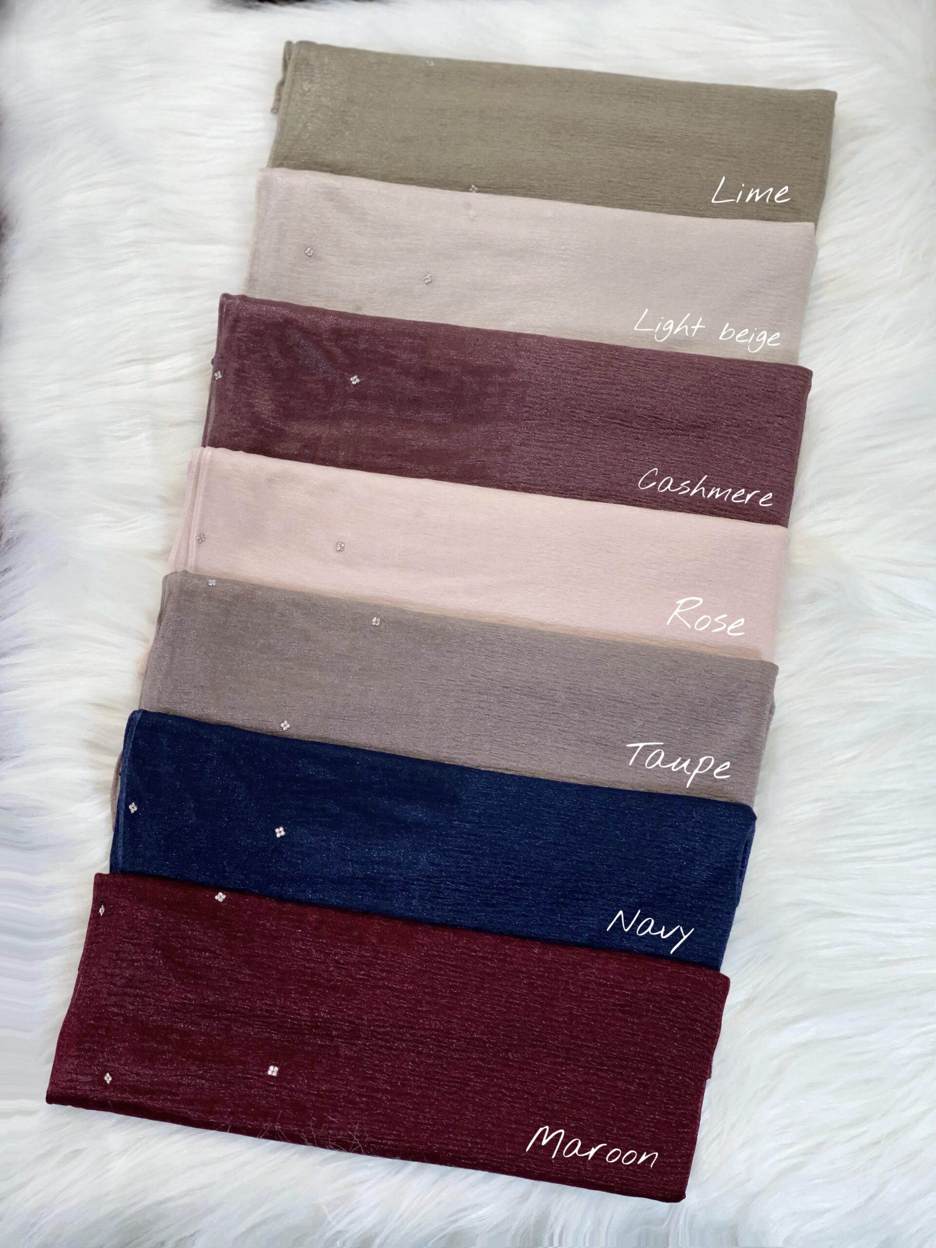 Baby blue, Beige, Black, Blue green, Brown, Cafe, Caramel, Cashmere, Grey, Light Beige, Lime, Maroon, Navy, nude rose, Off White, oily green, rose, taupe