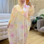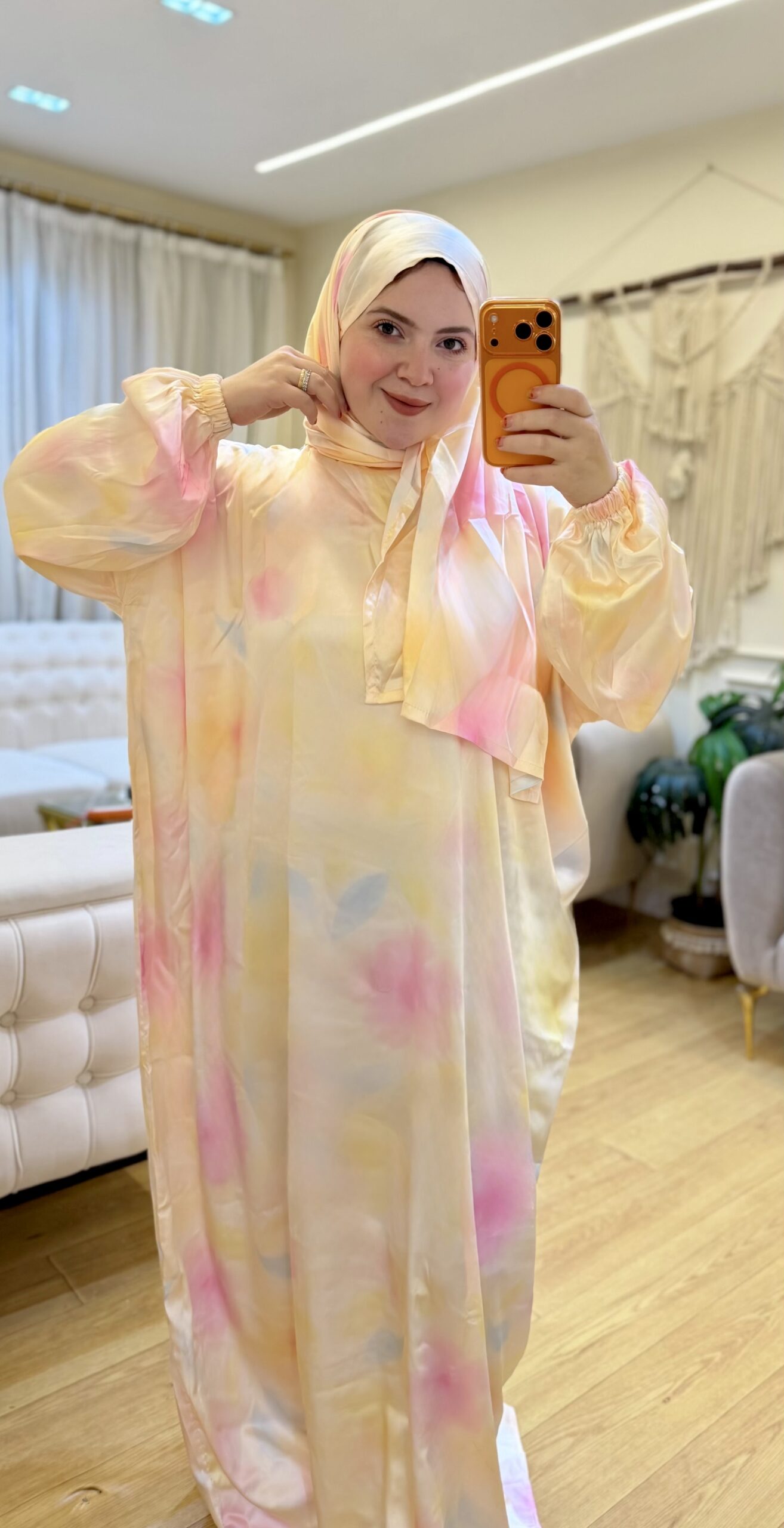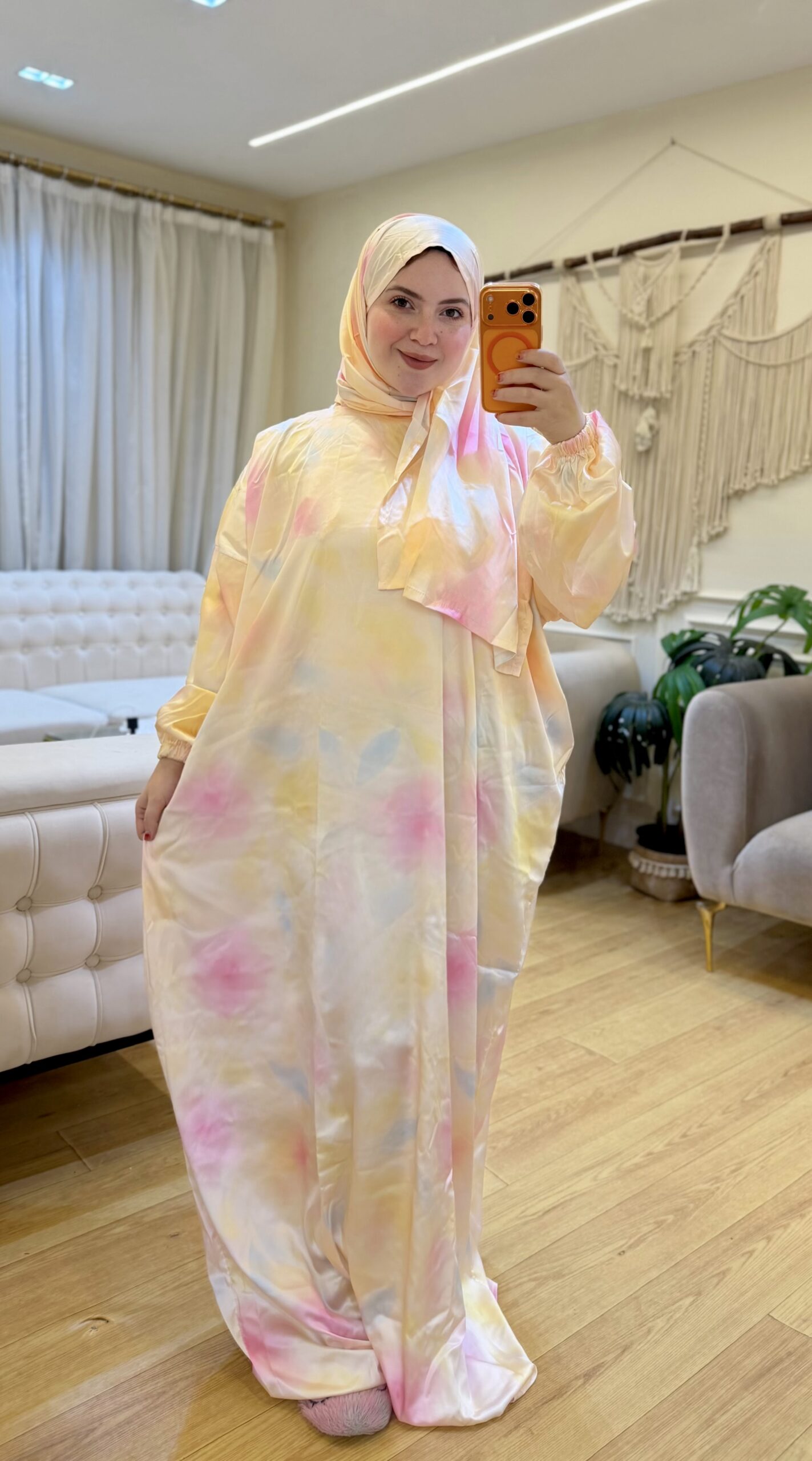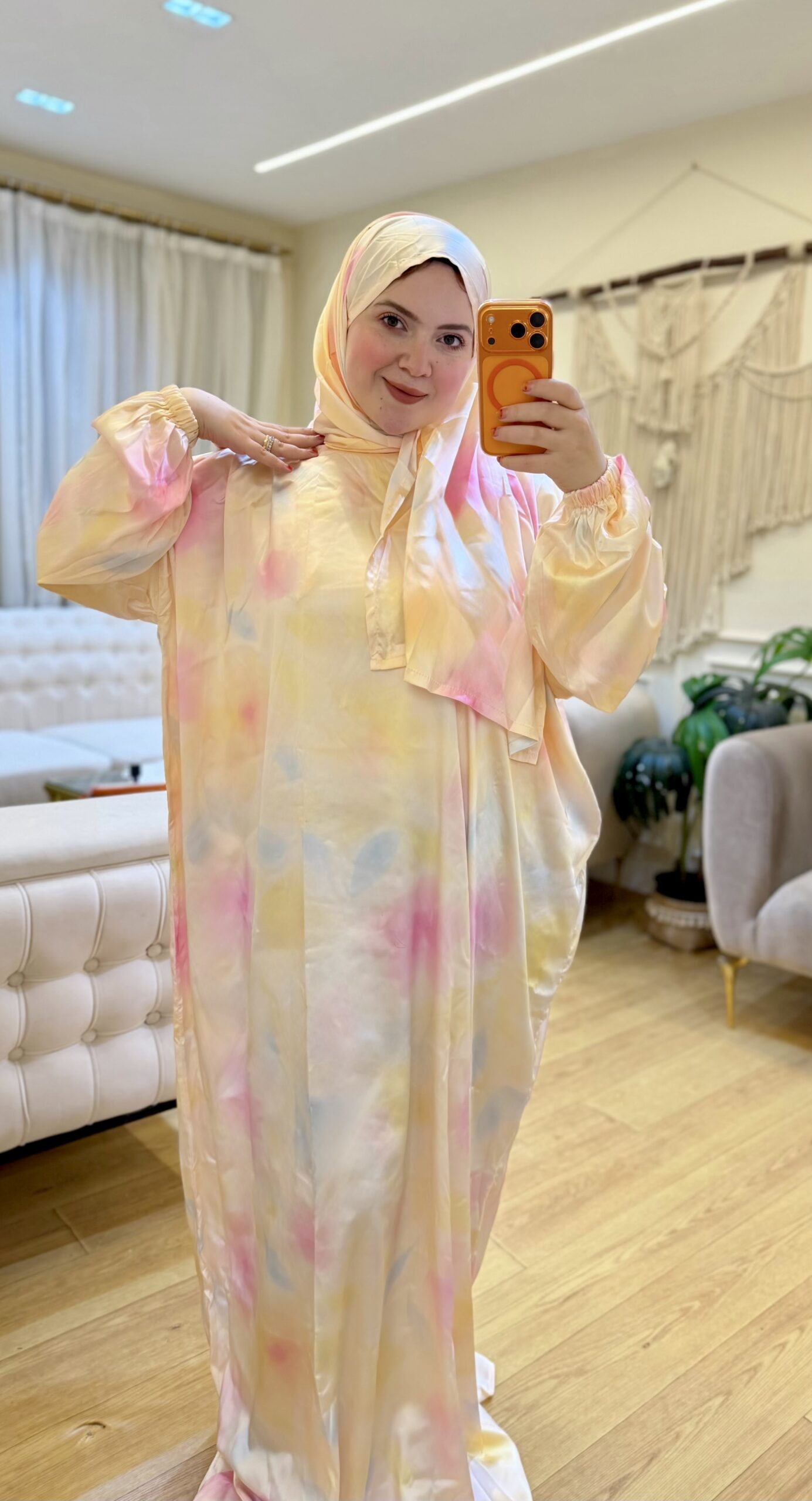 الخامه : ستان حرير ارماني مستود ملمسها نااااعم مريحه وخفيفه في نفس الوقت والباكدج بتاعته حلوه اوي وتنفع هديه كمان من نفس خامه الاسدال طرحه متصله المقاس : فري سايز ل 125 ك